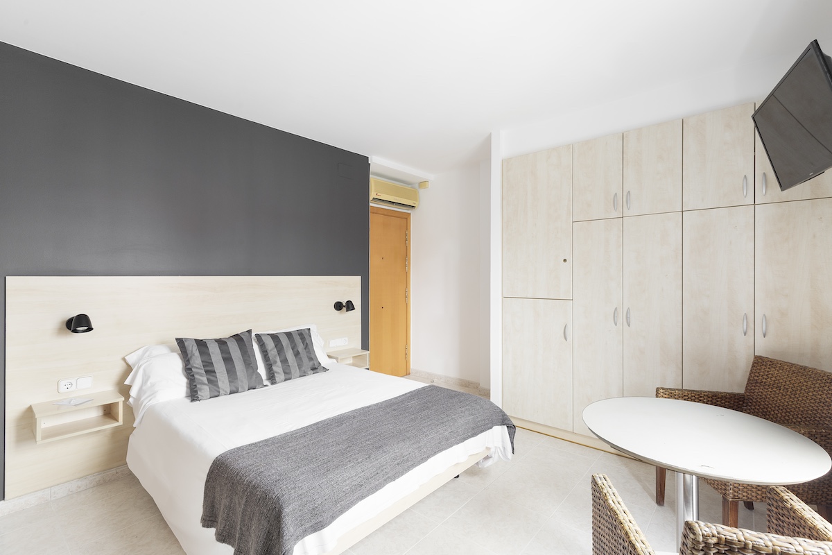 Los Estudios son habitaciones ideales tanto para estudiantes como para parejas, ya que son estancias que están dotadas de un espacio de habitación con cama de matrimonio, baño privado, zona escritorio, Smart TV y climatización individual. Los estudios se alquilan con cocina totalmente equipada, y las vistas pueden ser tanto a Patio interior como a la Rambla de Tarragona.