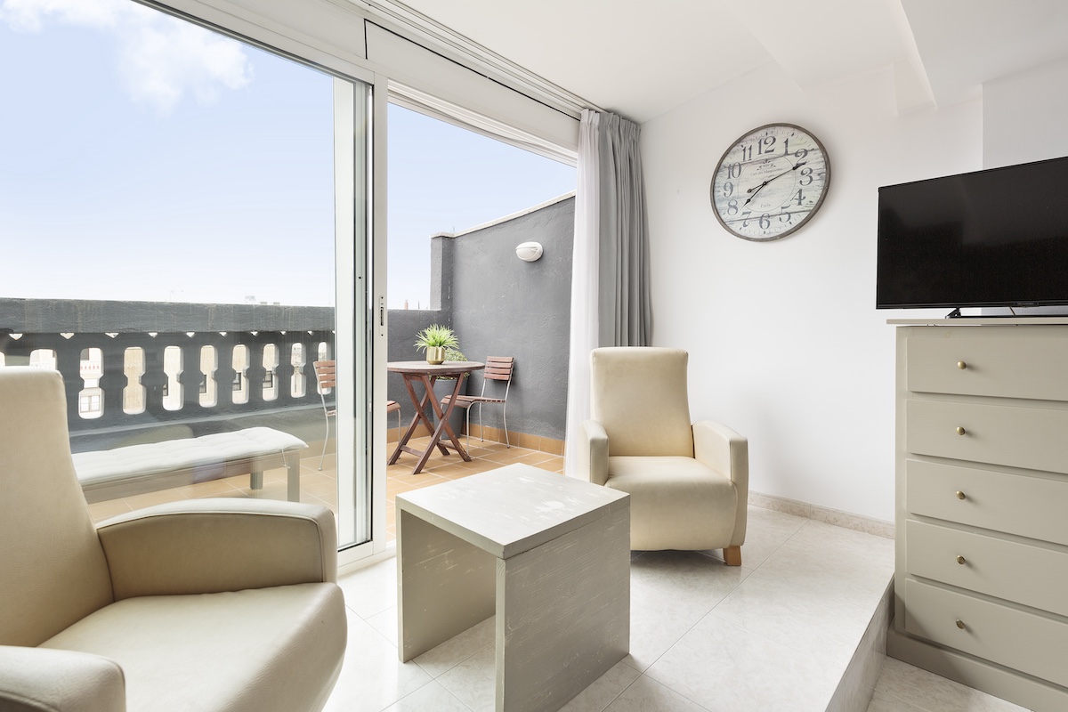 Las acogedoras suites están dotadas de una amplia habitación con cama doble, baño privado con bañera, cocina totalmente equipada y espacio diáfano de salón comedor. Están amuebladas y totalmente equipadas con Smart TV, climatización individual, microondas con grill, nevera, tostadora, hervidor eléctrico y cafetera. Además, disponen de una terraza privada con vistas al centro urbano de Tarragona, La Rambla.