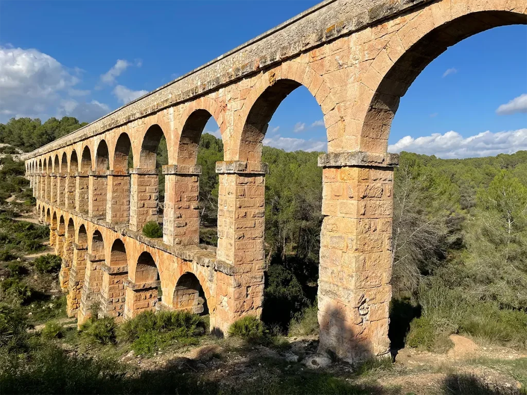 También denominado como el Puente del Diablo, es un puente acueducto romano que fue construido en el siglo I para llevar agua del rio Francolí a la antigua ciudad de Tarraco. Sus arcos y pilares de piedra se pueden observar a lo largo de sus 27 kilómetros de distancia. Es uno de los acueductos más impresionantes y bien conservados de la época romana y el más importante de Cataluña.